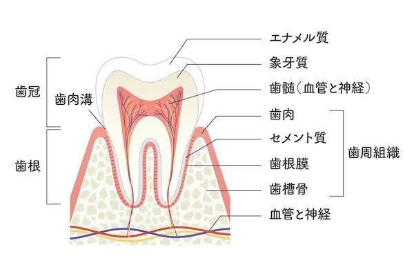 歯の周りというのは歯茎、歯を支える骨、歯根膜、セメント質のことを指します。