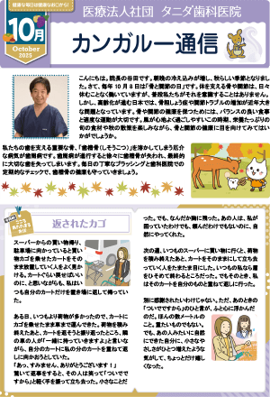 当院は、常に皆様の生活のすぐそばにあって、お口の健康に役立ちたいと願っています。そんな当院をもっと身近に感じていただくために、月1回カンガルー通信を発行しています。