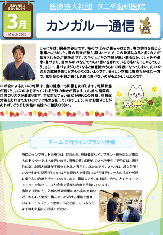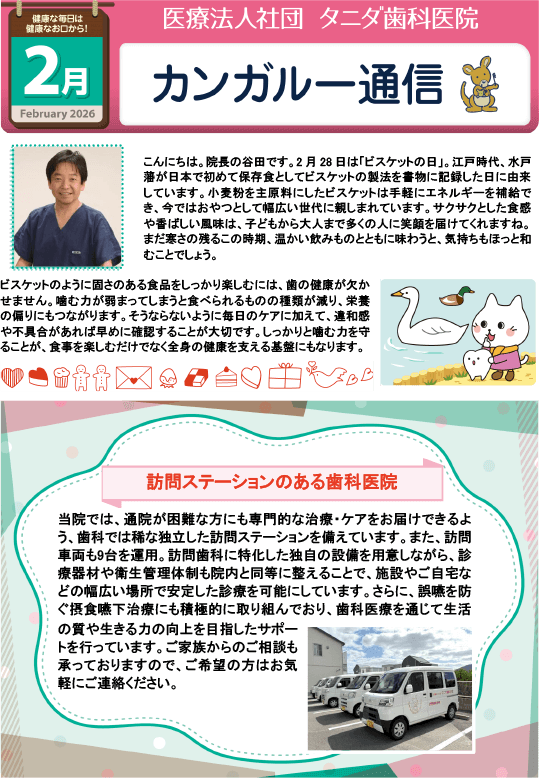 歯に関する知識や、季節の話題、歯に良いお料理レシピ、医院からのお知らせ等盛りだくさんです。ぜひご一読ください。